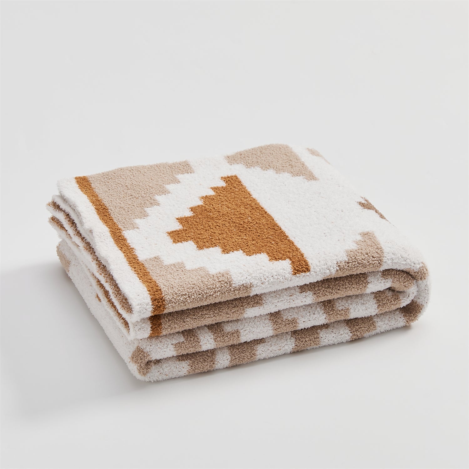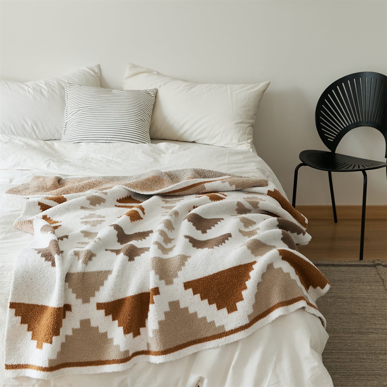 Soft knitted throw blanket featuring a relaxed bohemian geometric pattern. Lightweight, breathable, and suitable for everyday use across sofas and beds.