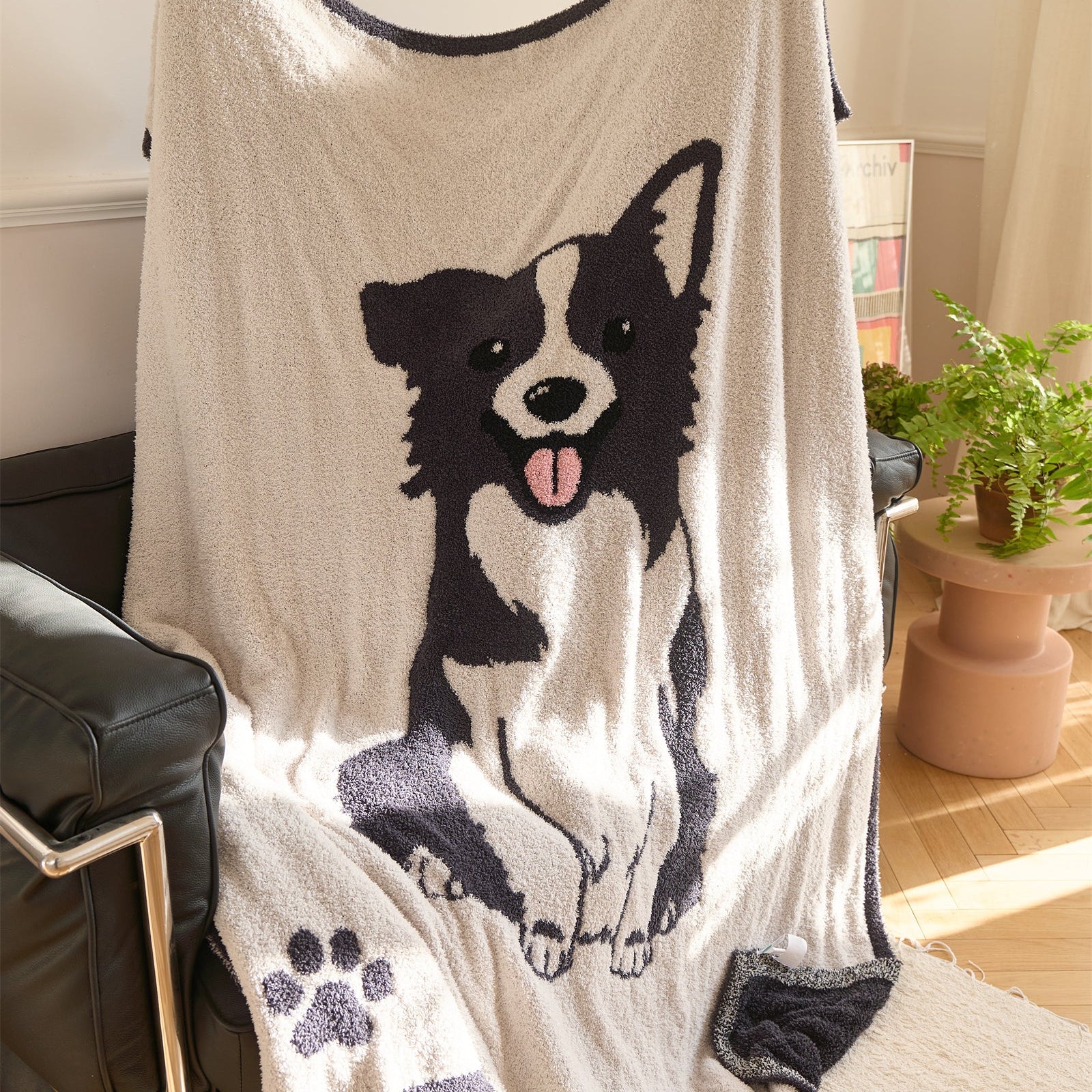 Soft knit dog throw blanket with a playful dog pattern. Designed for warmth, comfort, and everyday use. Suitable for pets, kids, and adults.