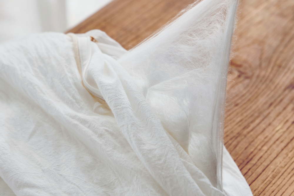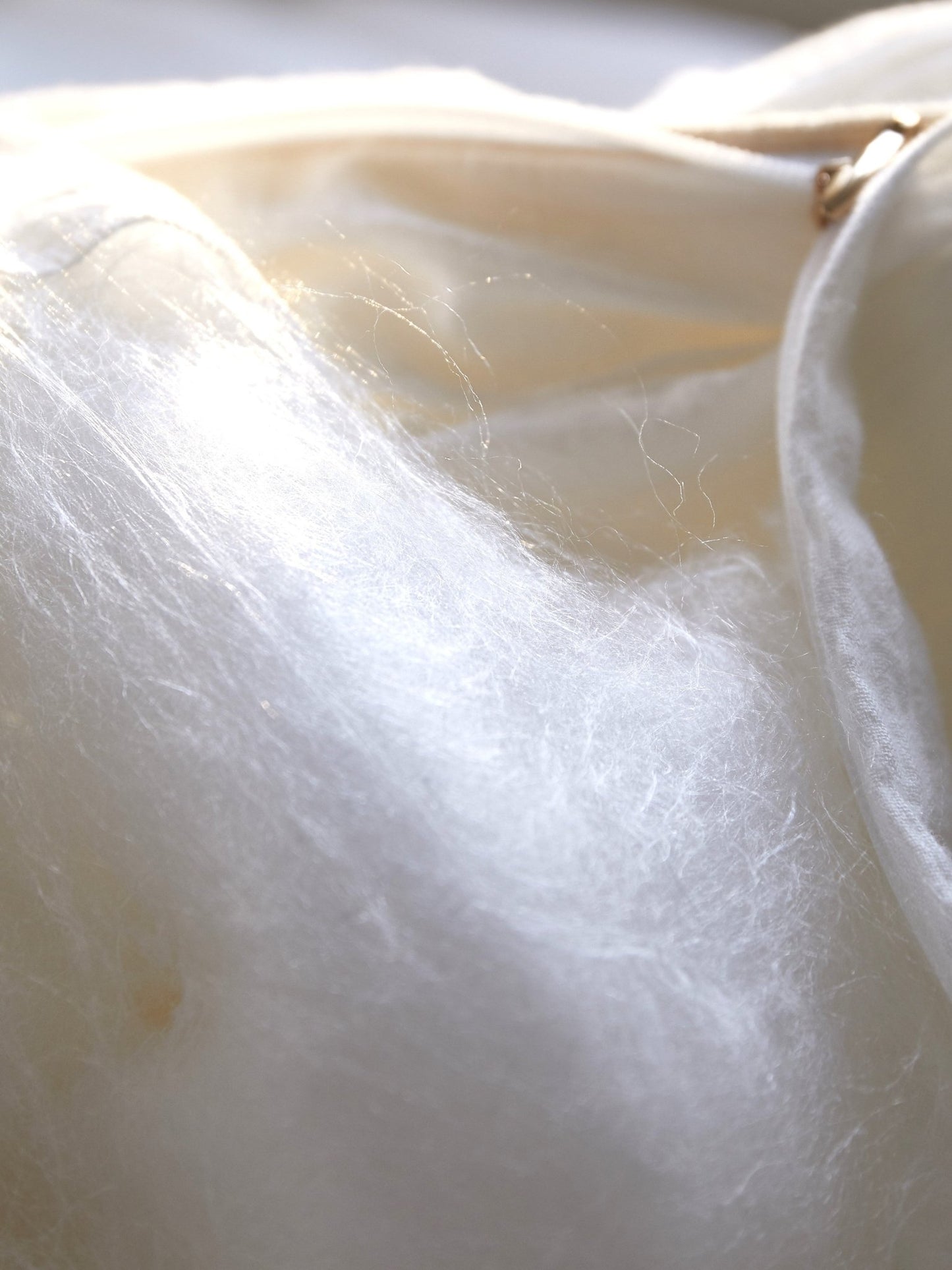 Carefully examine the exceptional quality and purity of our premium long-stranded silk dupion.