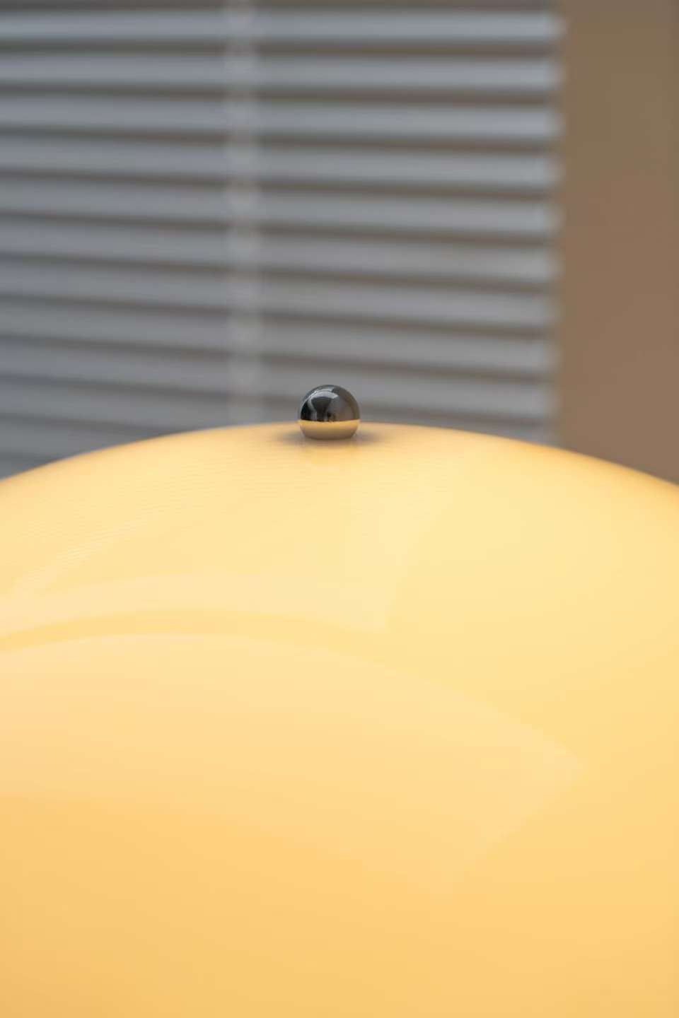 This mushroom-shaped floor lamp, inspired by Verner Panton’s 1971 Panthella, provides soft, even light through a curved dome. Its slim stem and round base offer a modern look perfect for living rooms, bedrooms, or reading spaces. The glare-free shade and durable high-gloss metal base enhance both style and function, with an easy inline on/off switch on the cord.